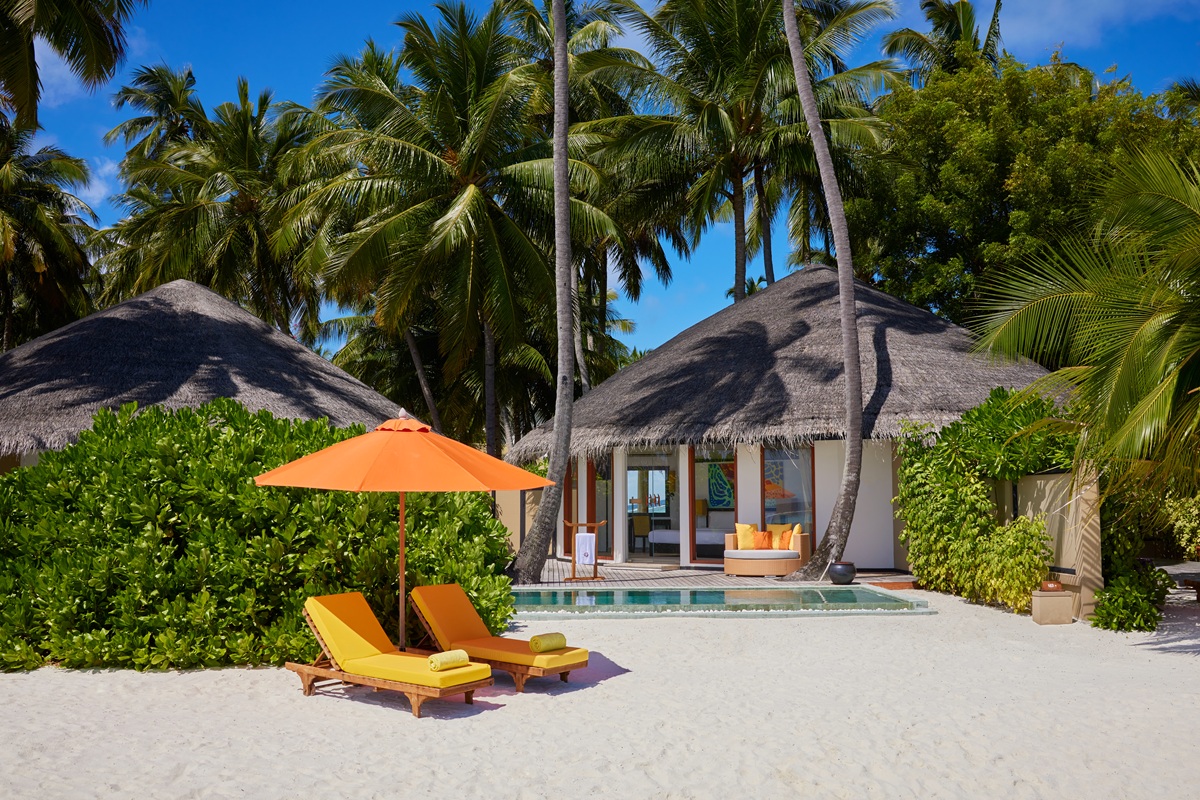 Береговые виллы в традиционном мальдивском стиле расположились в тенистых тропических зарослях, в двух шагах от белоснежного песчаного пляжа. Двухэтажные водные виллы построены над кристально-чистыми водами лагуны, рядом с домашним рифом.