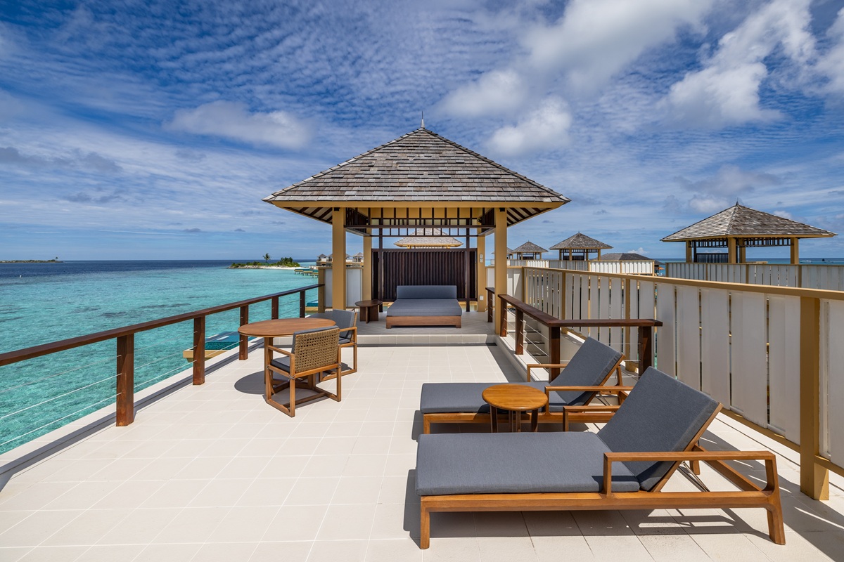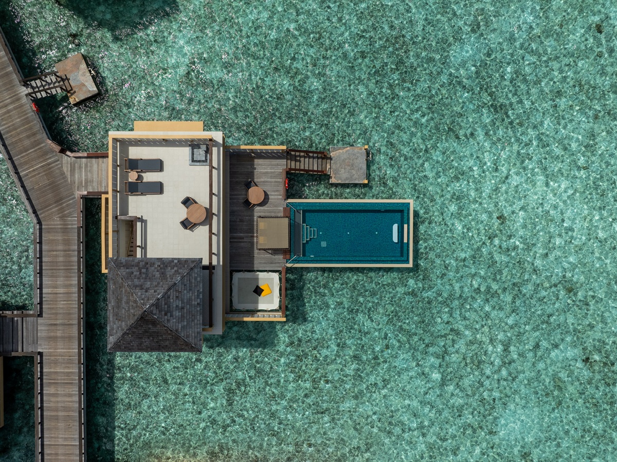 20 InOcean Pool Villa (~175 кв.м) - 2-уровневые водные виллы. Состоят из спальни с кроватью king size, зоны гостиной, террасы с зоной отдыха, гамаком и бассейном (~21 кв.м). На крыше находится еще одна оборудованная терраса. Максимальное размещение - 3 взрослых или 2 взрослых и 2 ребенка или 2 взрослых и 1 ребенок + 1 инфант.