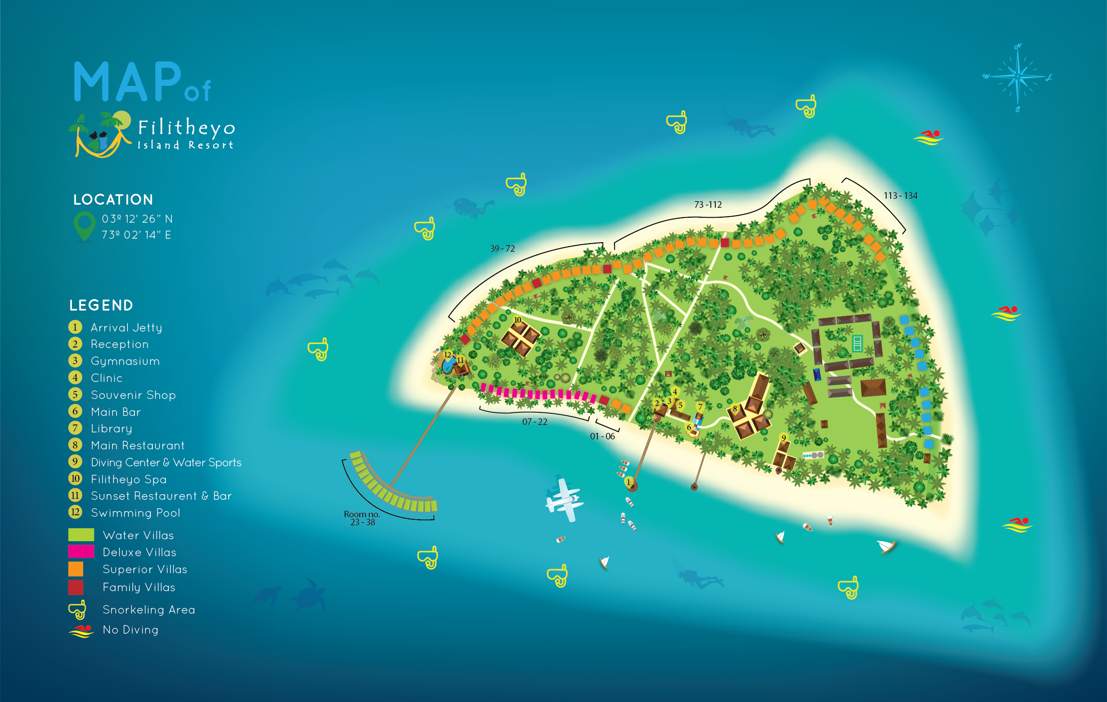 Остров Филитейо, Фаафу атолл. 118 км от международного аэропорта Мале. Размеры острова: 900м х 300м.