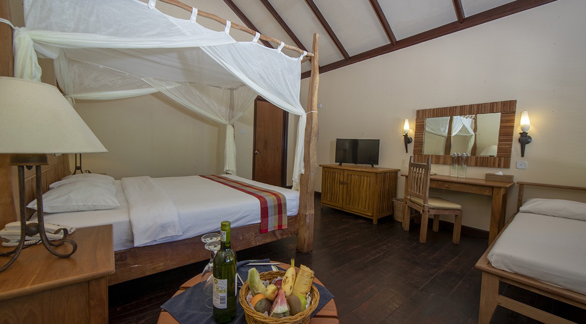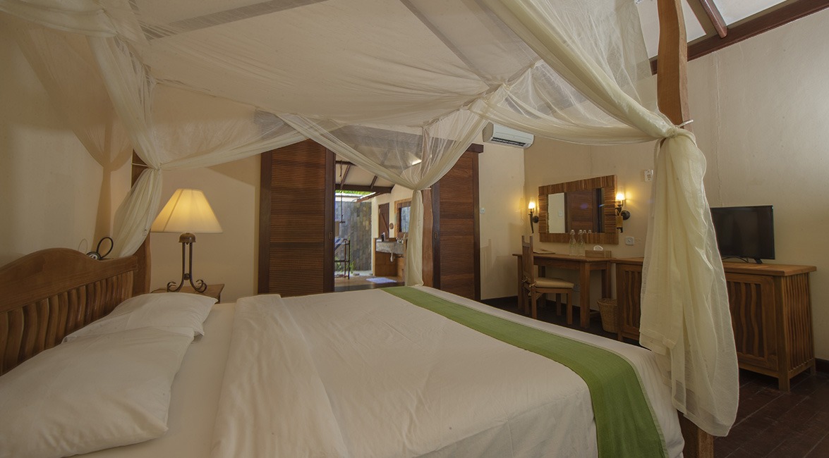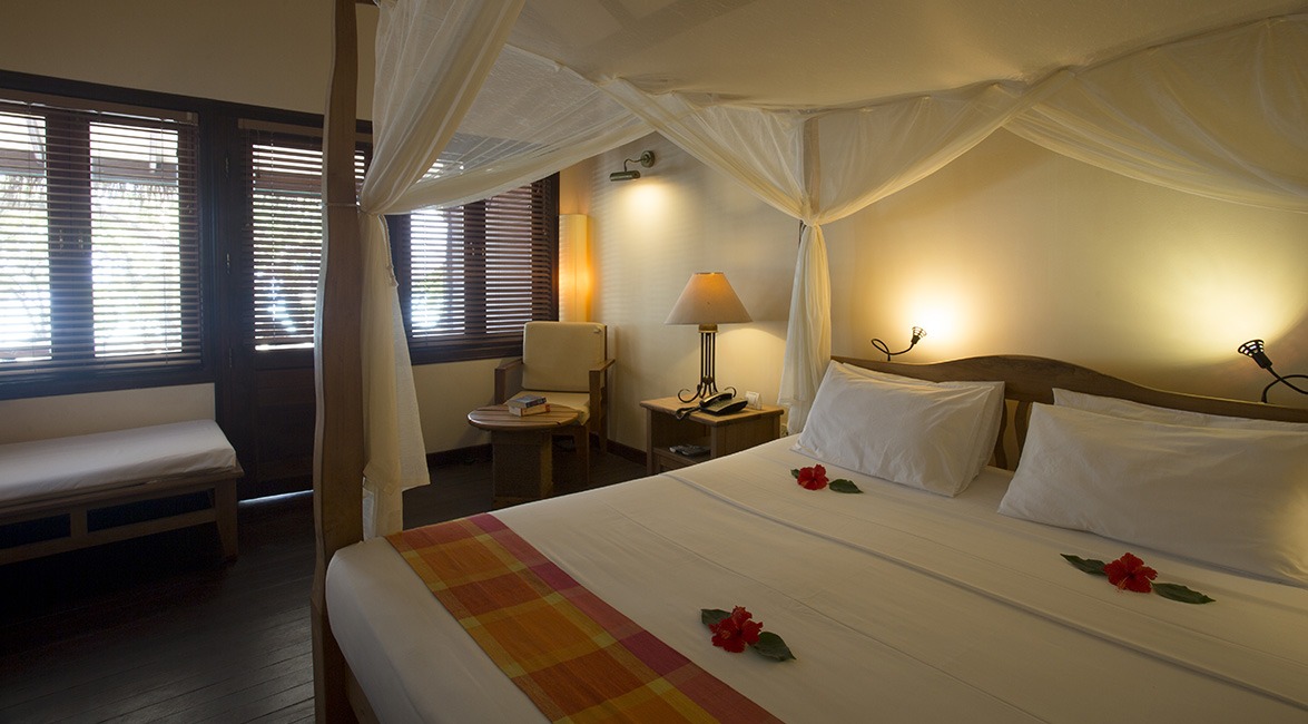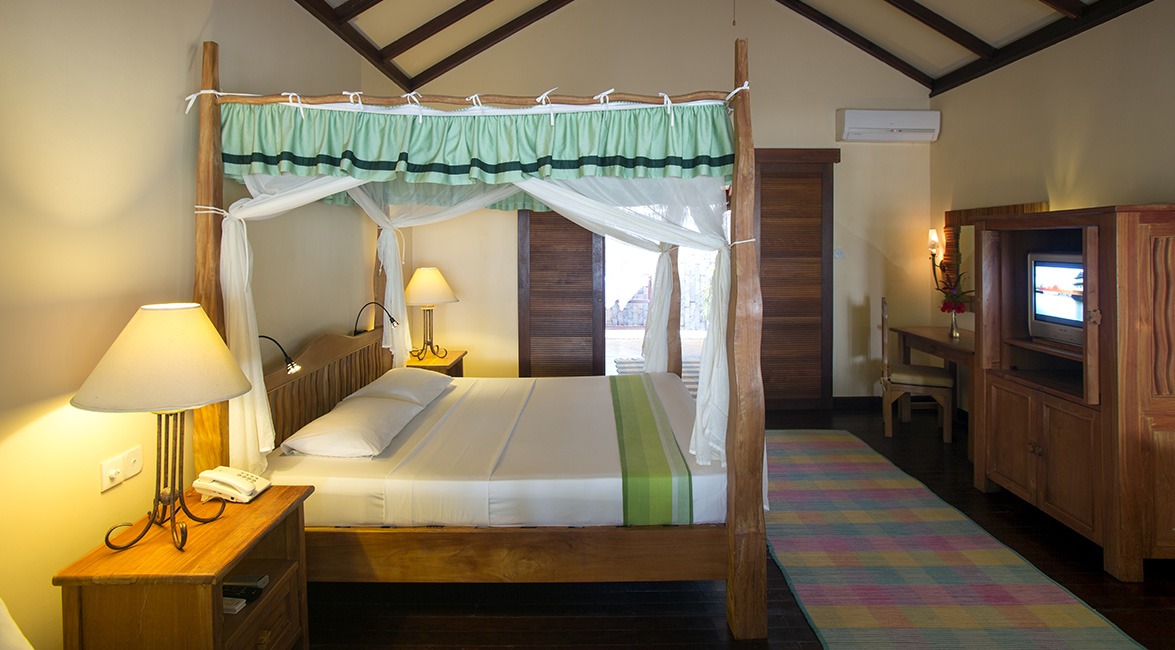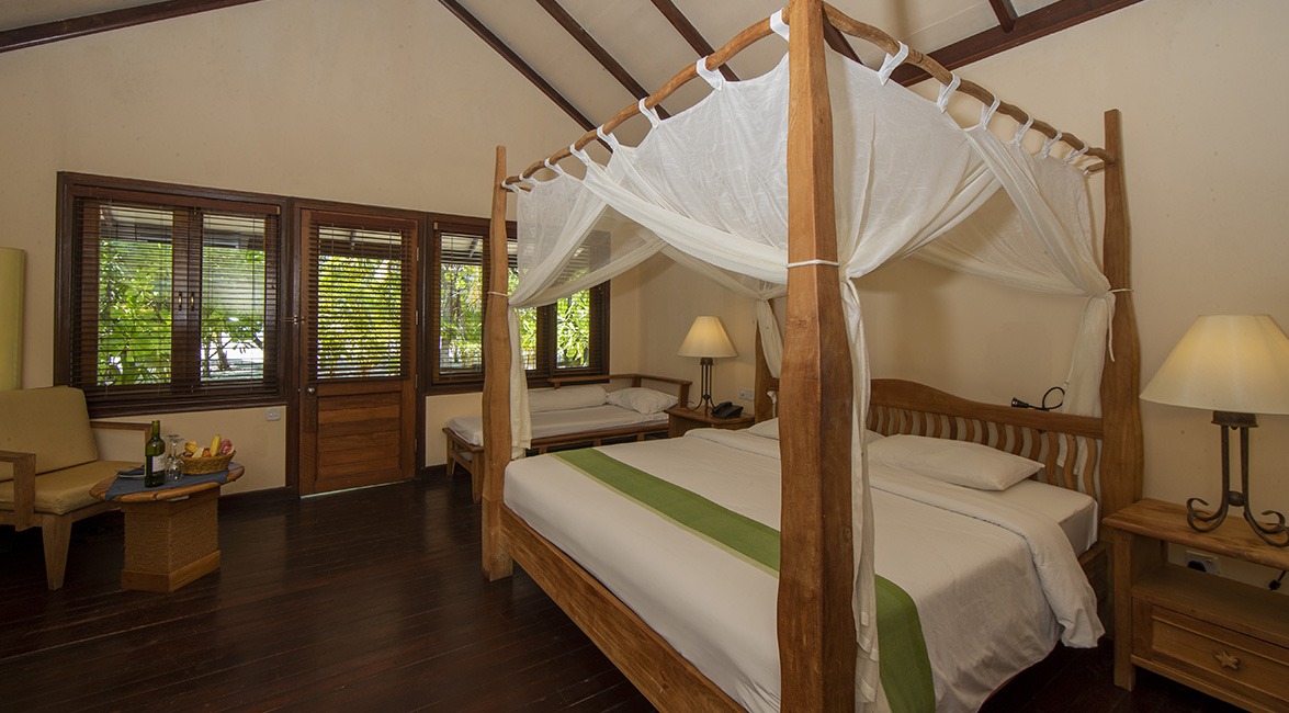 15 Deluxe Villa (~67 кв.м) - береговые отдельностоящие виллы. Состоят из спальни с кроватью king size или 2 раздельными кроватями и зоной для отдыха, ванной комнаты открытого плана с отдельной ванной и душем под открытым небом, террасы с обеденной зоной и выходом на пляж. Максимальное размещение - 3 взрослых или 2 взрослых и 1 ребенок.